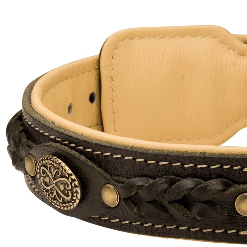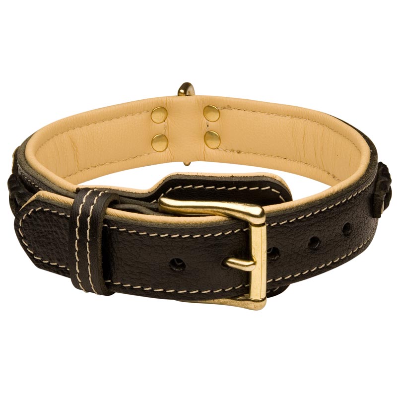 Want to find something special for your beloved pet, want to provide him with the best dog items he deserves? Order this Braided Leather Collar. It combines high quality, luxury, style and practicability. Besides its stylish braided design it will give your English Bulldog exclusive look and utmost comfort during different activities. This Leather Dog Collar is handmade of premium quality leather material, that's why the collar is durable and pleasant to touch. Due to its width and polished edges, this item won't cut into the dog's neck and bring him uncomfortable feelings. It is strong enough for such massive dogs as English Bulldog.